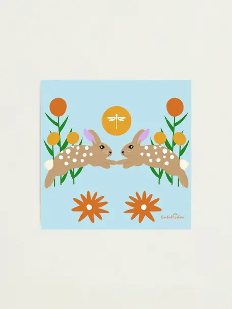 This design is a meeting of cute bunny rabbit friends. It is a celebration of friendship.